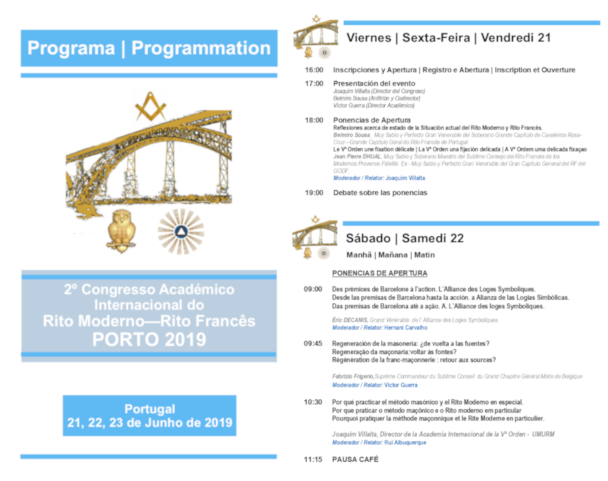 Étant un point de rencontre où les maçons et en particulier les praticiens des différentes écoles, visions et courants qui se manifestent dans le spectre du rite moderne et du rite français, réfléchiront sur leur perspective actuelle et leur futur développement.