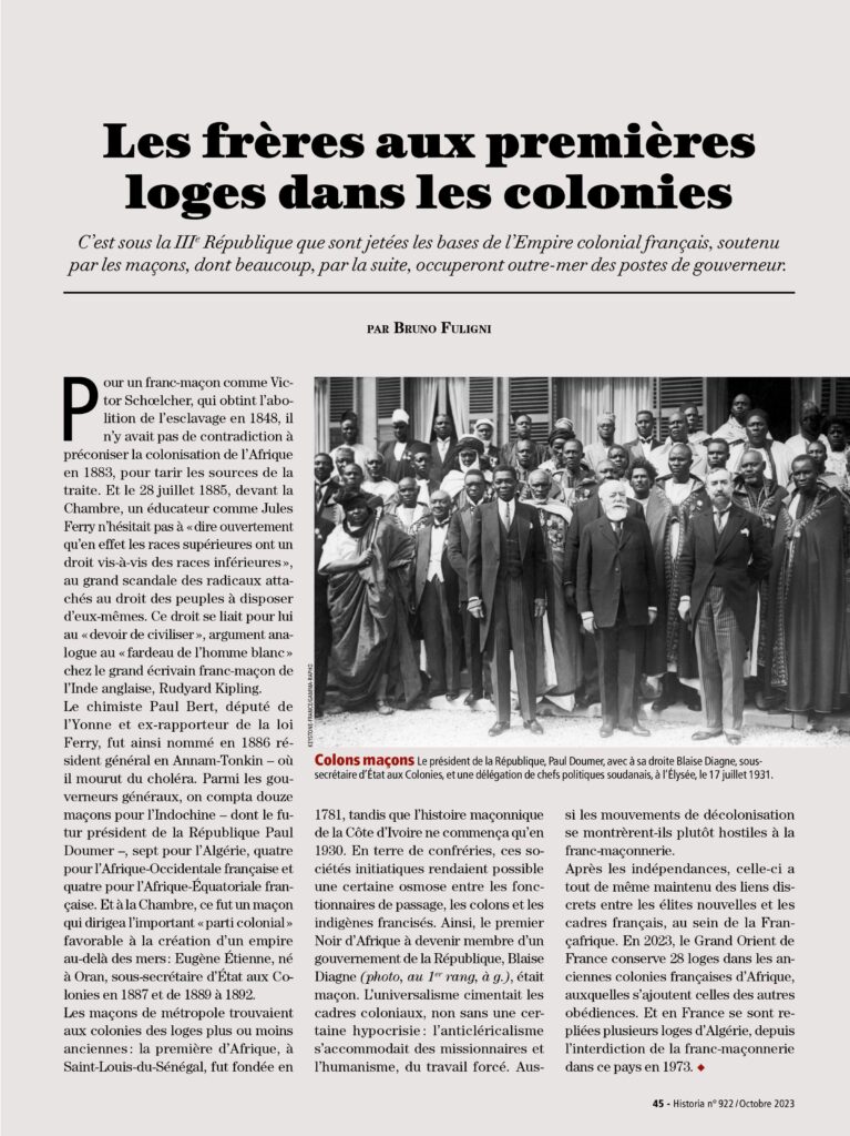 PAR BRUNO FULIGNI Extraits de Historia N° 922 – Octobre 2023 – Trois siècles de franc-maçonnerie