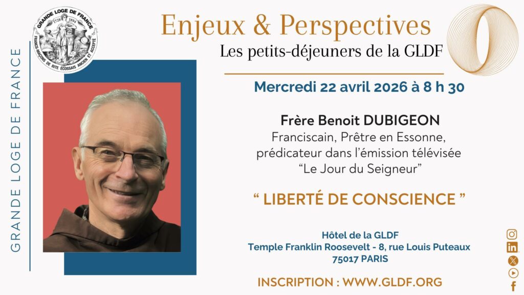 Le mercredi 22 avril 2026, la Grande Loge de France propose un nouveau temps fort de réflexion dans le cadre de son cycle « Enjeux & Perspectives », consacré cette année à un thème fondamental : la liberté de conscience.