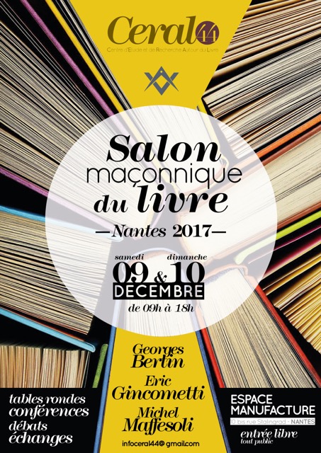 Le Centre d’Etude et Recherche Autour du Livre (CERAL) annonce le 1er Salon Maçonnique du livre à Nantes les 9 et 10 Décembre 2017
