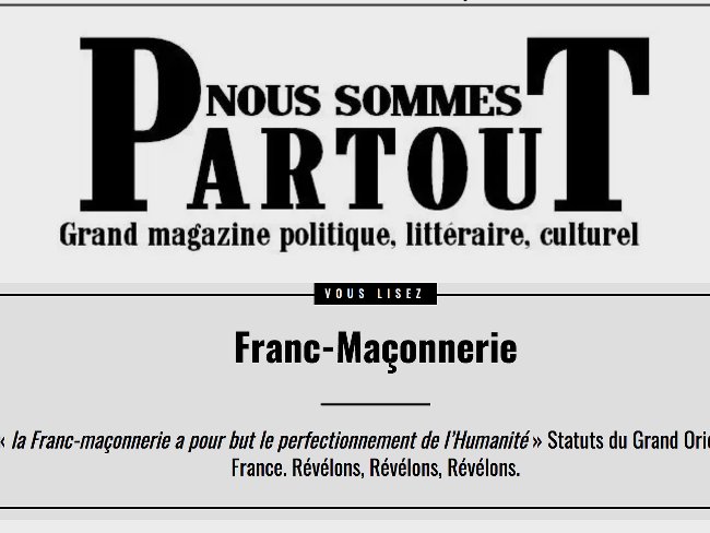 Résolument anti-maçonnique, voici un article découvert sur le site « Nous sommes partout » , site de réinformation de la droite nationale, traditionnaliste, monarchiste, contre-révolutionnaire.