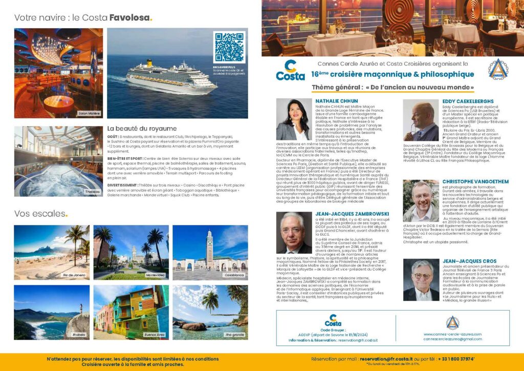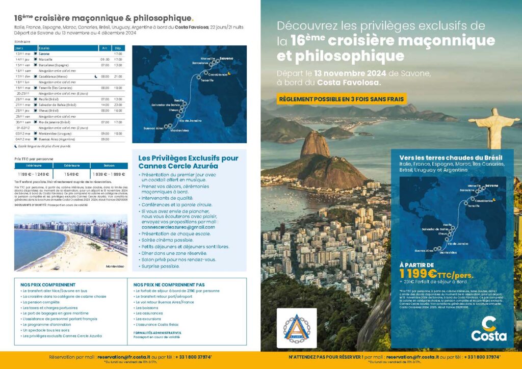 Le Cannes Cercle Azuréa et Costa Croisières organisent la 16ème croisière maçonnique & philosophique.