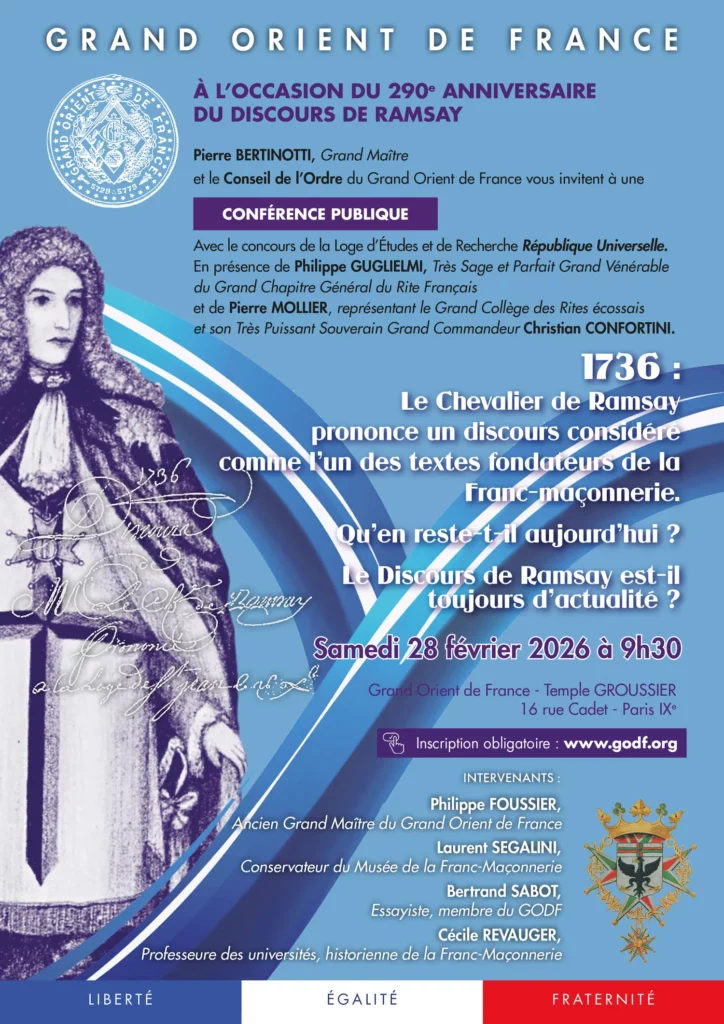 À l’heure où la Franc-maçonnerie s’interroge sur son sens, ses racines et son avenir, revisiter le Discours de Ramsay n’est pas un exercice de nostalgie, mais un acte de lucidité initiatique. Comprendre ce texte, c’est mieux saisir ce qui, hier comme aujourd’hui, fonde la vocation universelle de l’Ordre.