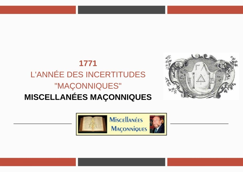 L’année 1771 est, dans une certaine mesure, celle du réveil maçonnique, en raison de la disparition du comte de Clermont, petit fils de Louis XIV, grand maître en titre, et l’élection de son successeur en la personne du duc de Chartres, arrière-petit-fils du Régent.