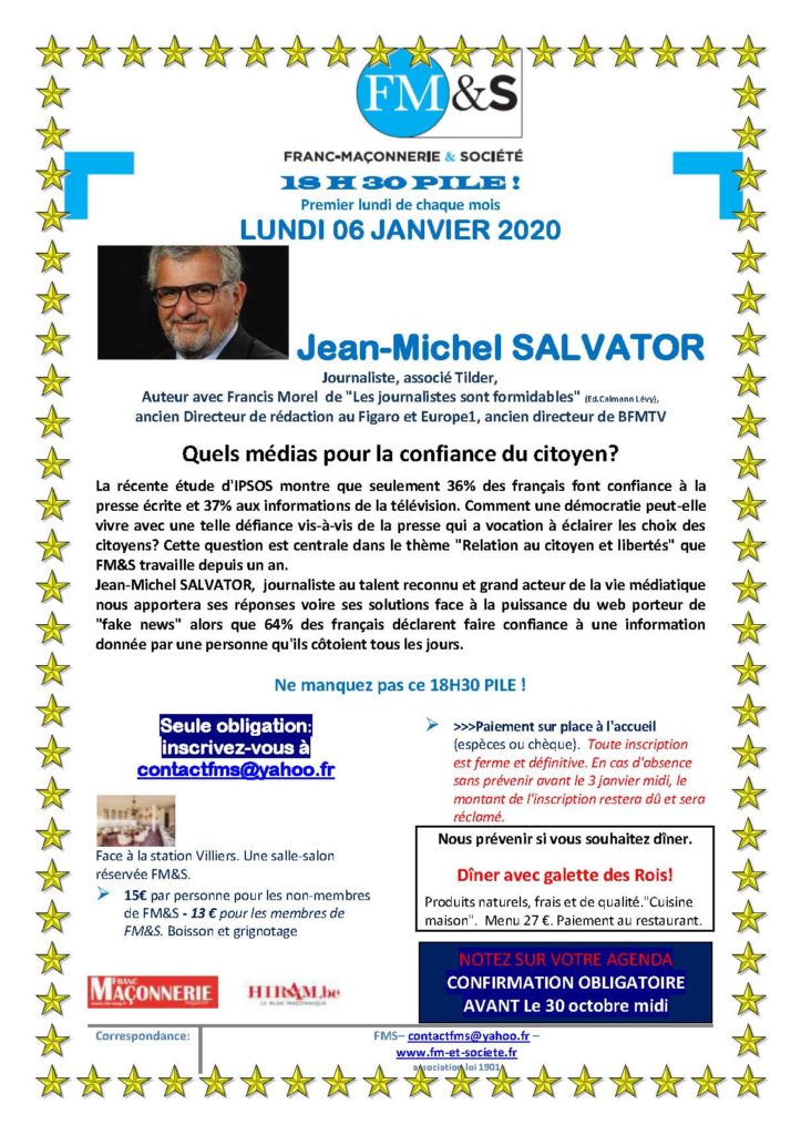 Franc-maçonnerie & Société (FM&S), le think tank pour faire vivre la fraternité vous convie pour le :