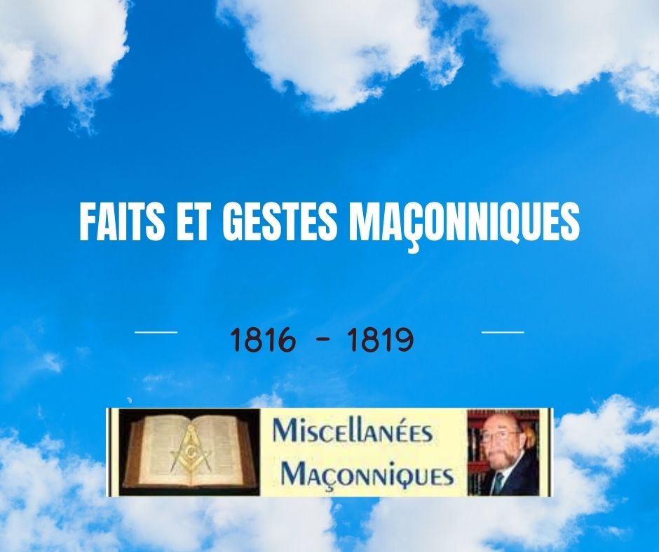 ✦ 19 juillet. – Circulaire du Grand Orient de France à ses loges, dans laquelle l’obédience se félicite du retour du roi Louis XVIII, ce « monarque bien aimé ».