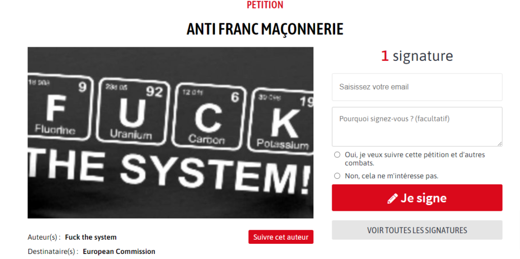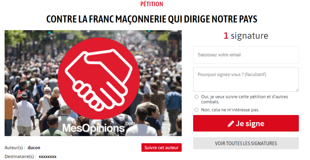 PÉTITION – ANTI FRANC MAÇONNERIE
