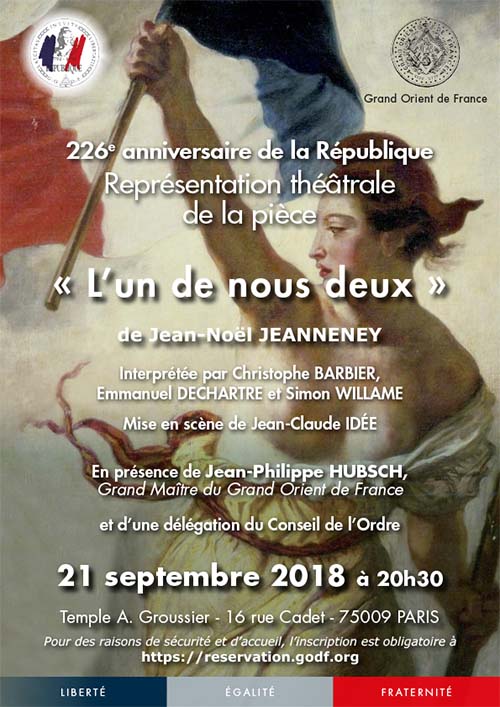 Représentation théâtrale de la pièce » L’un de nous deux » de Jean-Noël JEANNENEY