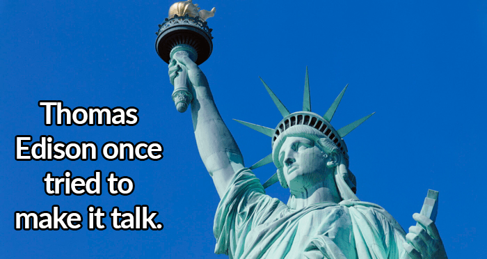 Thomas Edison a essayé de le faire parler. En 1878, il annonce des plans (qui évidemment ne se concrétisent pas) pour fabriquer un phonographe géant à placer à l’intérieur de la statue. Cela lui aurait permis de prononcer des discours qui pourraient être entendus dans tout New York.