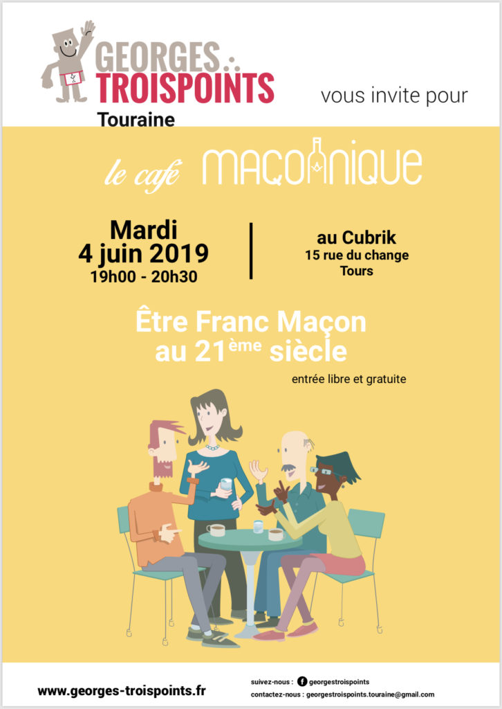Georges Trois Points Touraine est une association de Francs Maçons , femmes et hommes , membres de l’ordre maçonnique mixte international le Droit Humain. Ils ont décidé d’aller à la rencontre du public pour ce qu’est réellement la Franc Maçonnerie, au delà des poncifs fantaisistes et complotistes.