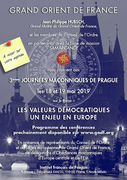 3èmes Journées Maçonniques de Prague se dérouleront les 18 et 19 mai 2019 sur le thème :