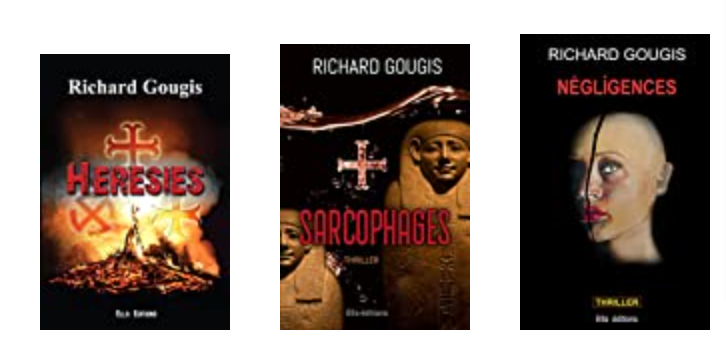 Voici ses 3 romans, thrillers ésotériques d’aventures, pleins de rebondissements autour de ses 3 personnages enquêteurs Malouni, Celestini et Fournier.