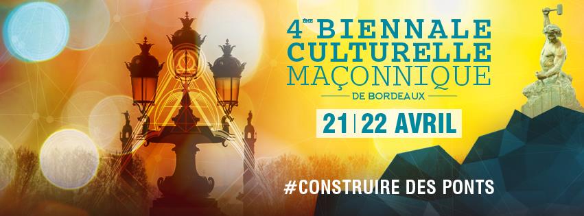 L’Institut Maçonnique d’Aquitaine (IM’AQ) organise la 4° édition de la Biennale Culturelle Maçonnique de Bordeaux se déroulera les samedi dimanche 21 et 22 avril 2018 à Bordeaux dont le thème en sera « #ConstruireDesPonts »