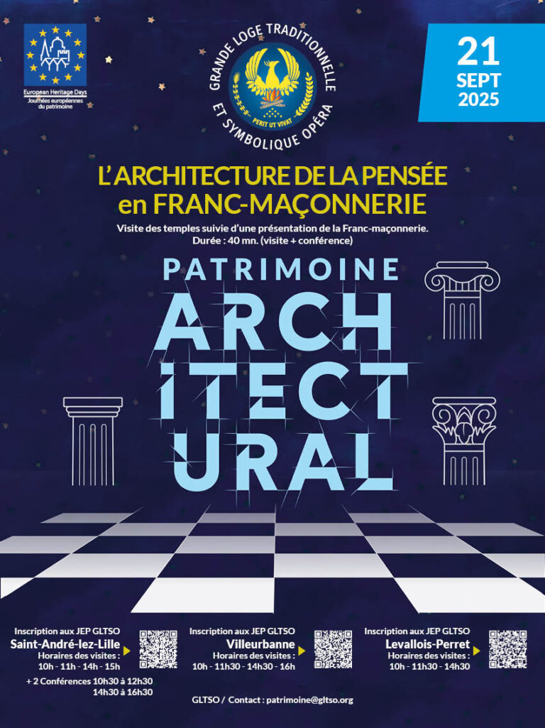 Placées sous le signe du patrimoine architectural, ces journées européennes du patrimoine sont une occasion pour la Grande Loge Traditionnelle et Symbolique Opéra d’ouvrir ses temples dimanche 21 septembre 2025.