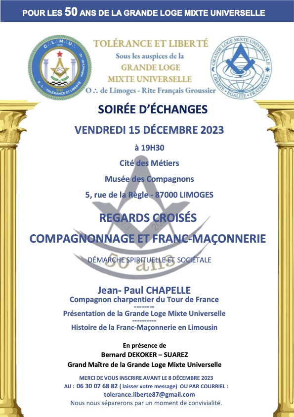50 ANS DE LA GLMU – REUNION PUBLIQUE Evenements | 12 décembre 2023 | 2 | by A.S. Pour les 50 ans de la Grande Loge Mixte Universelle (GLMU)
