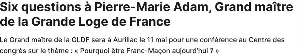 Le site d’information Actu Cantal a posé 6 questions à Pierre-Marie Adam, Grand Maître de la Grande Loge de France (GLDF)
