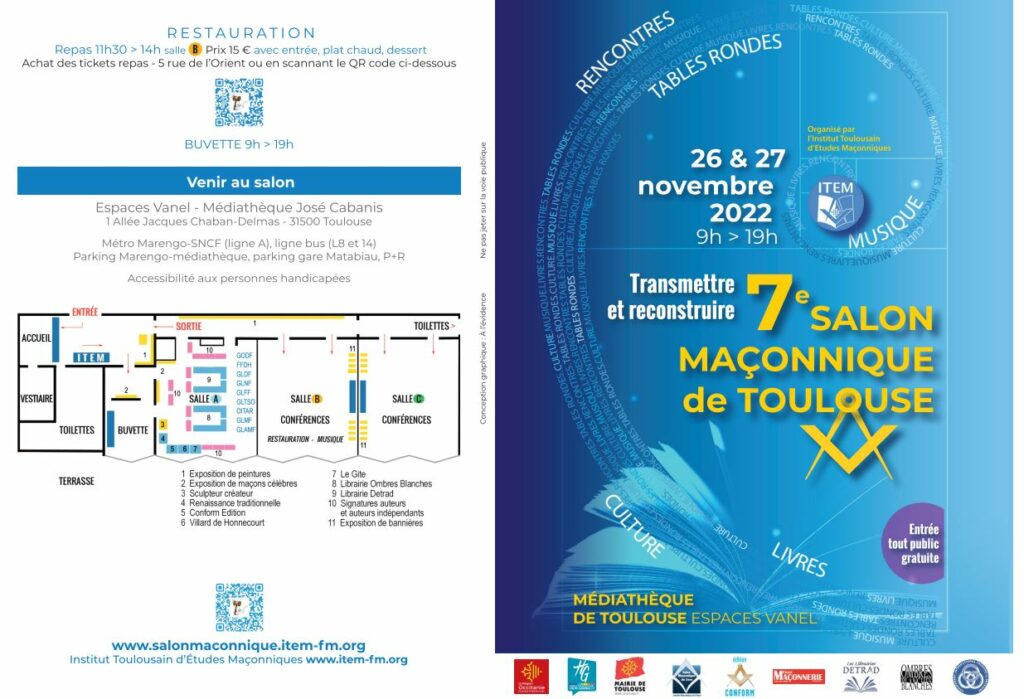 C’est dans cet esprit que le 7e Salon Maçonnique de Toulouse a choisi deux des principaux thèmes de la tradition maçonnique : TRANSMETTRE ET RECONSTRUIRE.