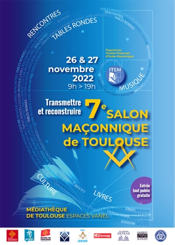 L’Institut Toulousain d’Études Maçonniques – avec le soutien de la Mairie de Toulouse, du Conseil Départemental de la Haute-Garonne, du Conseil Régional Occitanie et en partenariat avec les librairies Ombres Blanches (Toulouse) et DETRAD (Paris) – propose deux jours de rencontres et de réflexion.
