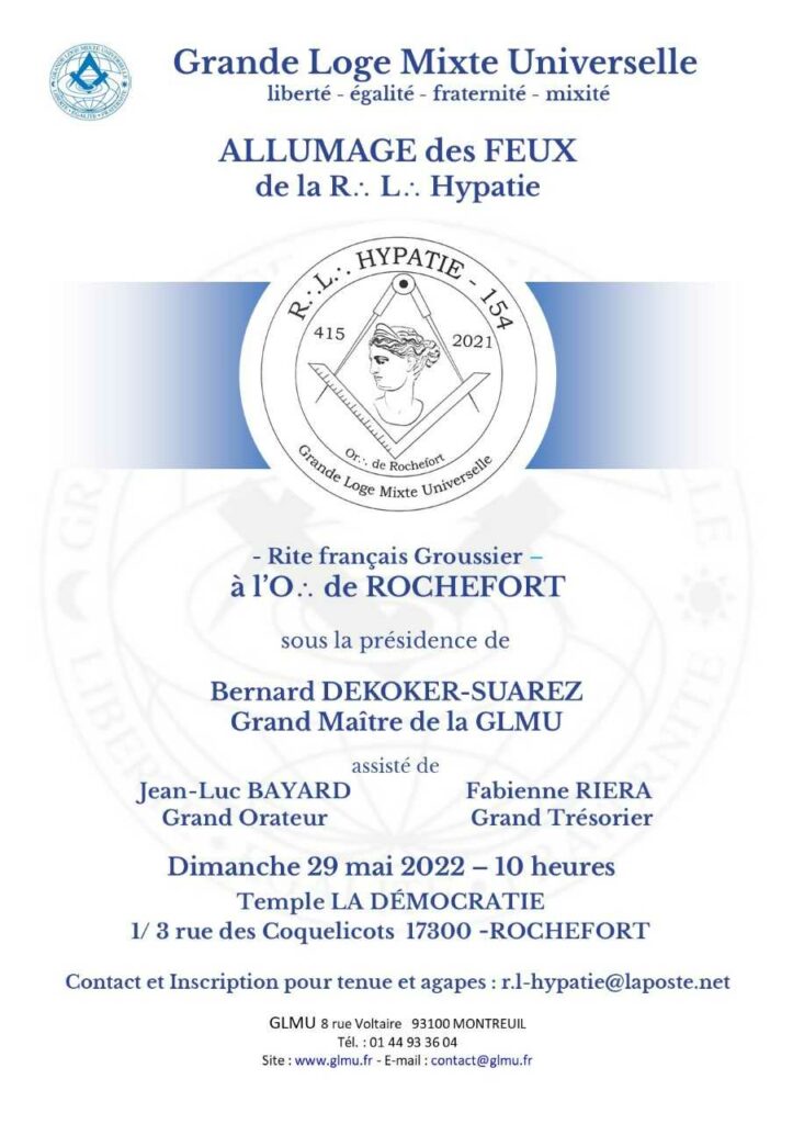 - La Respectable Loge Hypathie à l’Orient de Rochefort