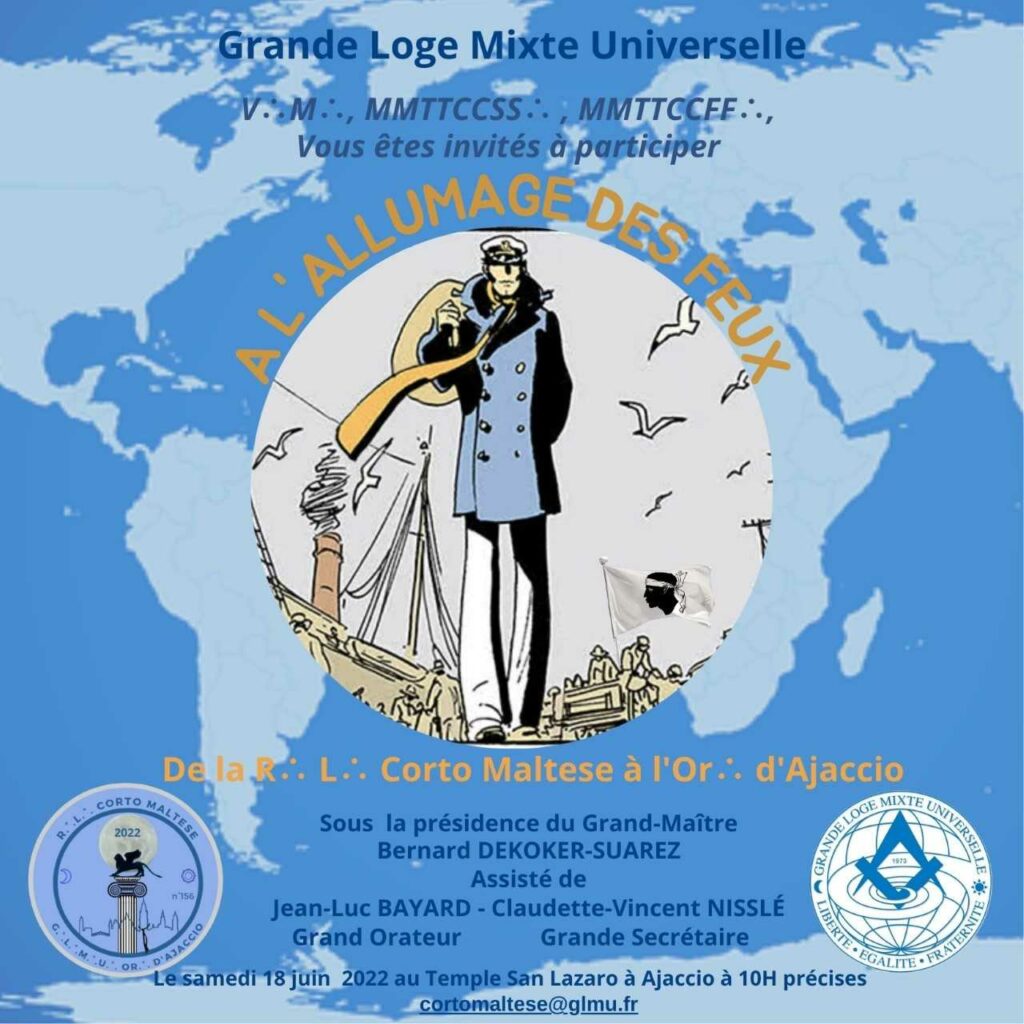 ALLUMAGE DES FEUX – LOGE CORTO MALTESE A AJACCIO DE LA GLMU Evenements | 1 juin 2022 | 0 | by A.S. Un nouvel allumage des feux pour la Grande Loge Mixte Universelle (GLMU) :l’allumage de feux de la loge Corto Maltese à l’Orient d’Ajaccio le 18 juin 2022