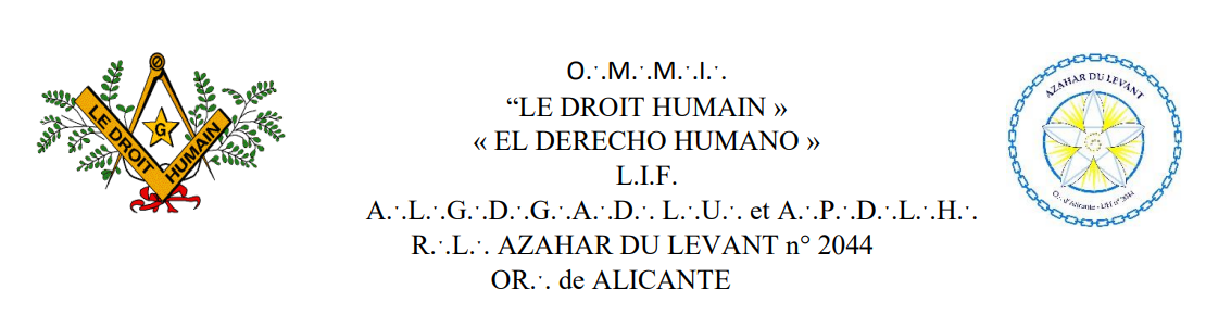 Notre Resp.°. L.°. AZAHAR du LEVANT travaille à l’Orient d’Alicante.