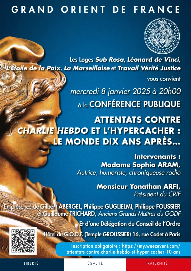 Conférence publique organisée par les Loges Sub Rosa, Léonard de Vinci, L’Étoile de la Paix, La Marseillaise et Travail Vérité Justice.