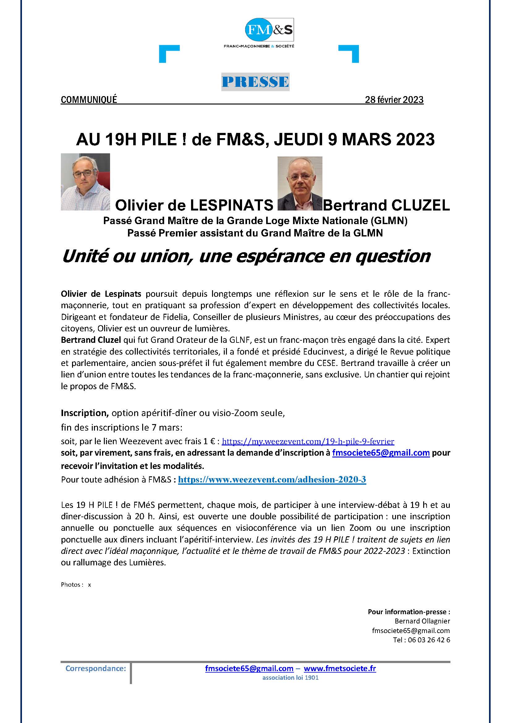 Inscription, option apéritif-dîner ou visio-Zoom seule, fin des inscriptions le 7 mars 2023 :