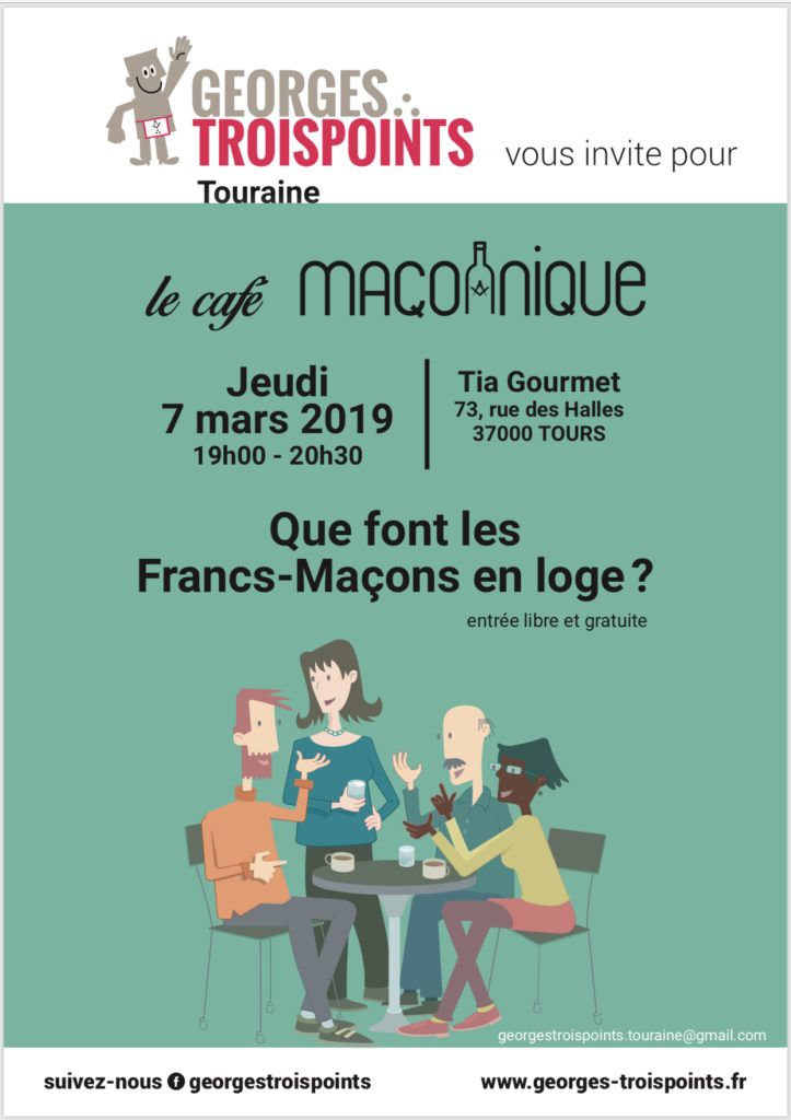 Après le succès du premier café  maçonnique en Touraine, le deuxième aura lieu le jeudi 7 mars 2019 à partir de 19 heures chez « Tia  gourmet », 73 rue des Halles  à Tours .