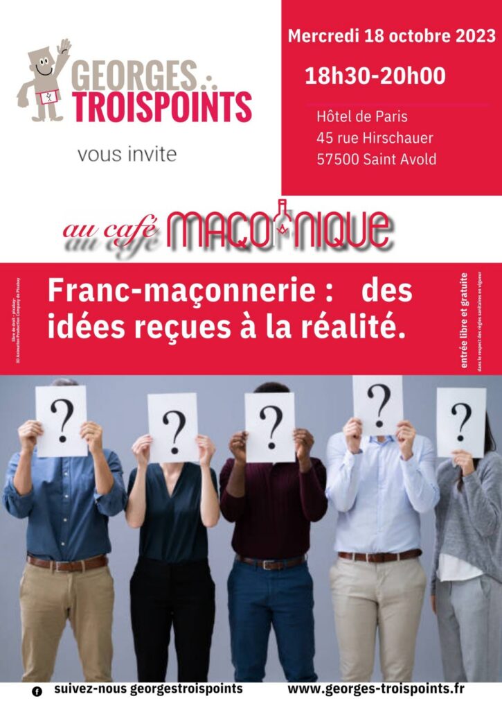 L’association Georges Troispoints Moselle est composée de francs-maçons initiés au Droit Humain, la plus ancienne obédience maçonnique mixte. Le café maçonnique est l’occasion de rencontrer des francs-maçons qui ont à cœur d’expliquer leur démarche personnelle.