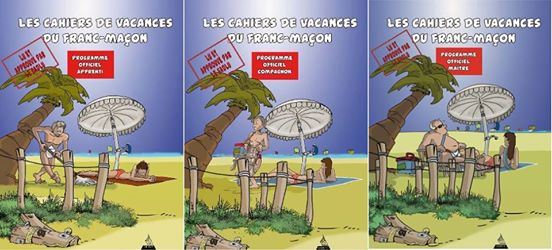 Nos deux compères vous proposent 3 cahiers de vacances du franc-maçon – Apprenti- Compagnon- Maître.