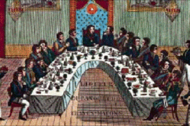 Un clin d’œil malicieux aux agapes et aux traditions : sous le pavé mosaïque, entre humour fraternel et second degré, le Père Noël vient rappeler qu’en loge aussi, on sait célébrer l’esprit… sans jamais oublier la Lumière (et parfois un…