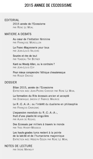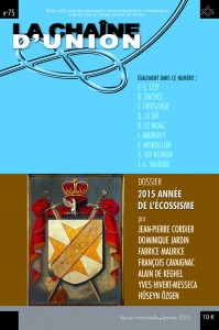 La Revue Trimestrielle « La Chaîne d’Union« , revue d’étude maçonniques, philosophiques et symbolique publiée par le Grand Orient de France de Janvier 2016 (N°75) a pour dossier central » 2015, Année de l’écossisme «