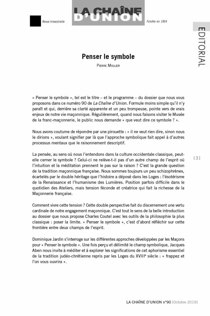 La Revue Trimestrielle « La Chaîne d’Union« , revue d’étude maçonniques, philosophiques et symbolique publiée par le Grand Orient de France d’octobre 2019 (N°90) à pour dossier central :