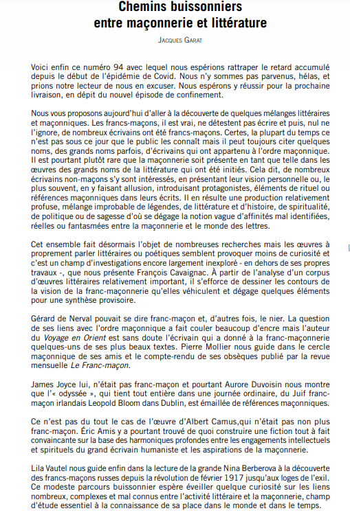 DOSSIER : CHEMINS BUISSONNIERS ENTRE MAÇONNERIE ET LITTÉRATURE