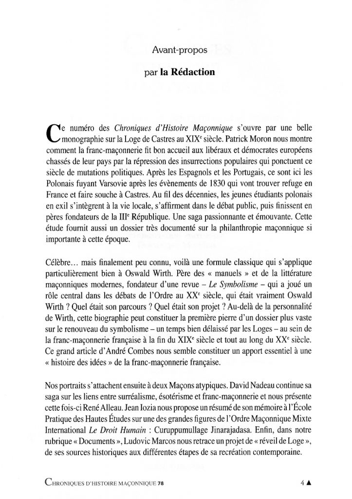 La revue de l’ Institut d’Etudes et de Recherches Maçonniques (IDERM), Chroniques d’Histoire Maçonnique n° 78 est sorti avec un dossier intitulé « Oswald Wirth le père de la littérature maçonnique moderne«