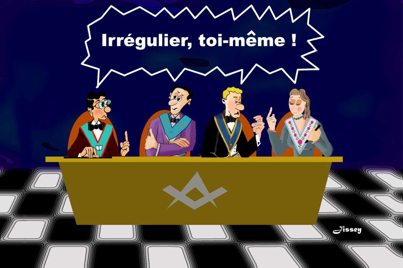 Il dessine régulièrement dans le journal de la Grande Loge de France dont il est membre. Jissey donne actuellement des conférences intitulées « L’humour Maçonnique est-il une thérapie ? » dans toutes les loges de toutes les obédiences de France et de Navarre qui souhaitent l’entendre sur le sujet. Il faut dire que toutes celles et tous ceux qui ont entendu les conférences de Jissey ne l’ont jamais regretté tant la verve du frère Jacques est légendaire. Franc-Maçon depuis 33 ans, il est également conférencier, journaliste, illustrateur, conseil en communication et directeur de collection ésotérique !