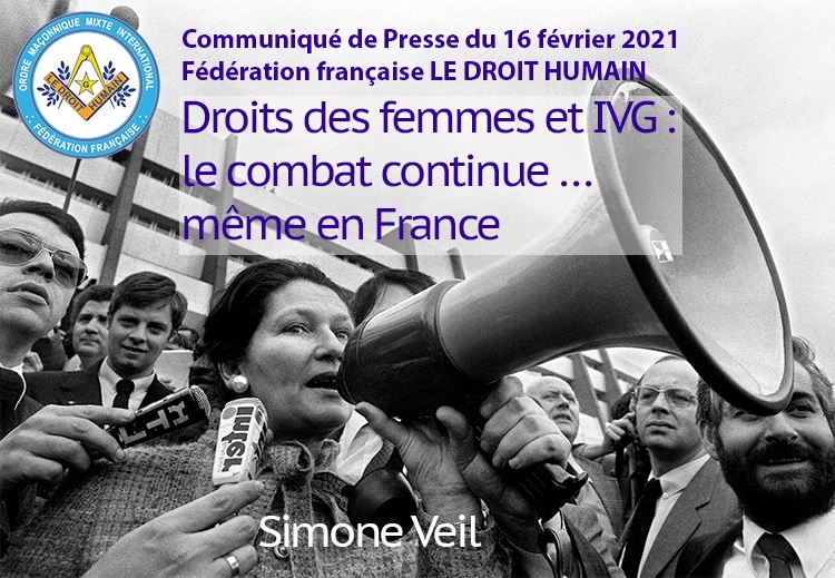 Les Francs-maçons de la Fédération française du DROIT HUMAIN (dont la Constitution Internationale affirme l’absolue égalité de l’homme et de la femme) continueront à soutenir les efforts et le combat pour que le droit accordé en 1975 soit un « droit effectif » pour toutes les femmes, malgré les obstacles élevés de plus en plus ouvertement par les forces conservatrices.