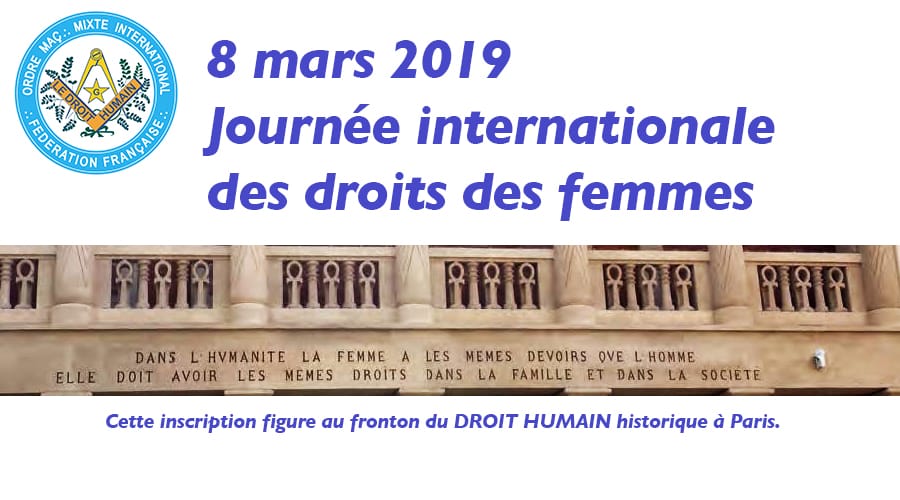 FÉDÉRATION FRANÇAISE DE L’ORDRE MAÇONNIQUE MIXTE INTERNATIONAL – LE DROIT HUMAIN pour la Journée Internationale des droits des femmes du 8 mars 2019