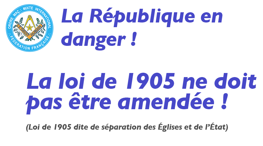 Les Francs-maçons de la Fédération française du DROIT HUMAIN réaffirment leur attachement aux principes de cette loi laïque qui constitue l’un des fondements de la République. Ils s’opposent à toute velléité de la dénaturer et appellent le gouvernement à ne pas s’engager dans cette voie par le biais d’amendements.