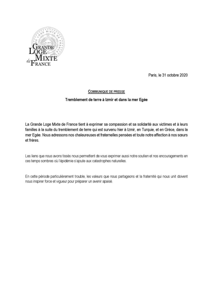 COMMUNIQUE GLMF – Tremblement de terre à Izmir et dans la mer Egée