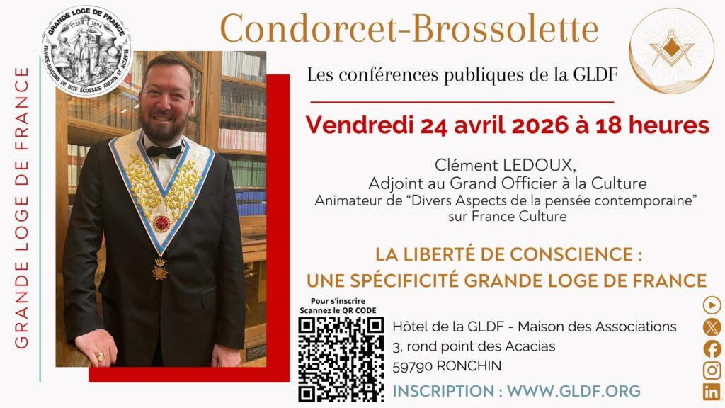 Le cycle de conférences Condorcet-Brossolette propose des rencontres ouvertes à toutes et à tous, en particulier aux personnes non-maçonnes souhaitant mieux comprendre la démarche initiatique pratiquée au sein de la Grande Loge de France. Ces conférences constituent un véritable espace de réflexion, de dialogue et de transmission autour des valeurs fondamentales de l’Obédience : spiritualité, humanisme et liberté de conscience.