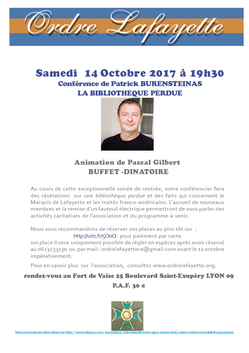 CONFERENCE DE PATRICK BURENSTEINAS « LA BIBLIOTHEQUE PERDUE » A LYON