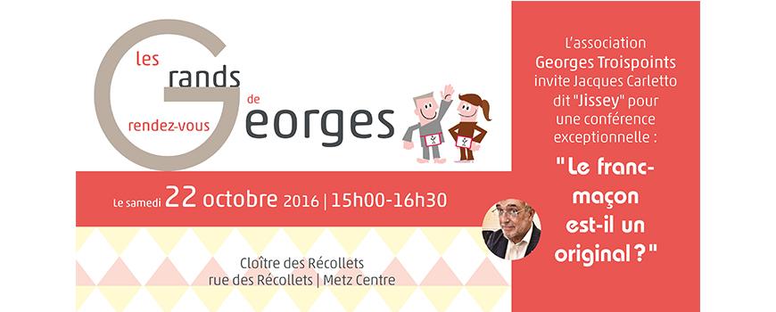 • La conférence « Georges invite Jissey » est ouverte à tout public adulte, hommes et femmes, intéressé ou non par la Franc-maçonnerie.