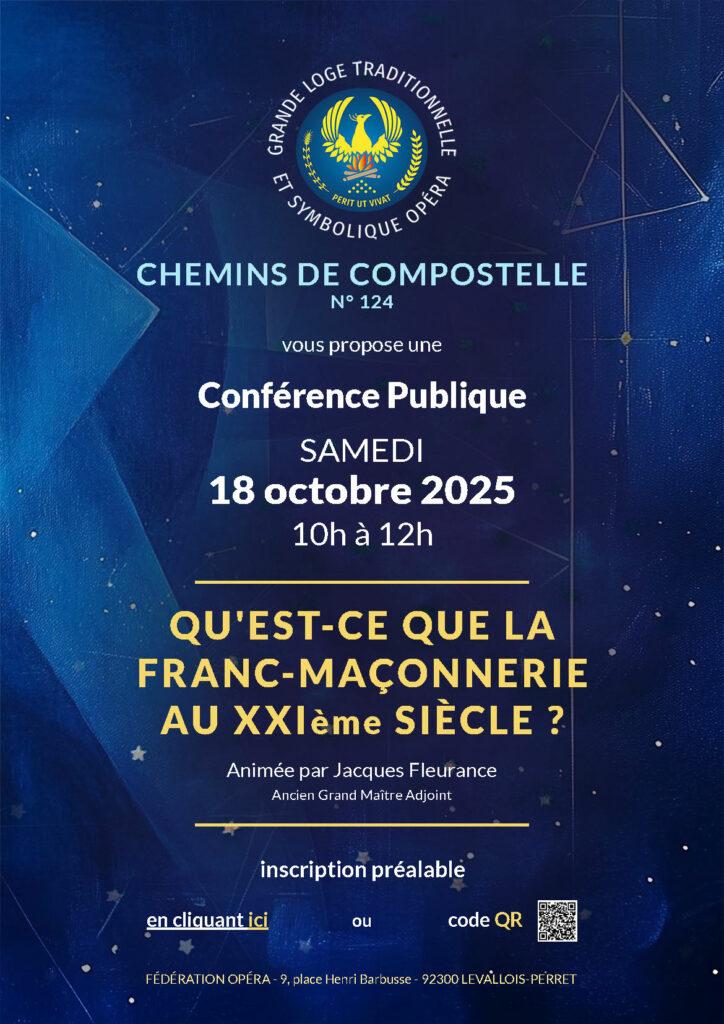 La Loge Chemin de Compostelle n°124 de la Grande Loge Traditionnelle et Symbolique Opéra (GLTSO) organise une conférence publique exceptionnelle autour d’une question centrale :