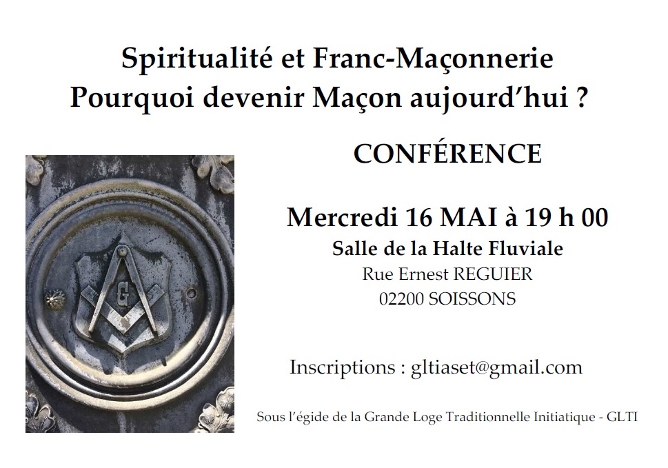 Soisson – Conférence – 16 mai 2018 à 19h00 – « Spiritualité et Franc-Maçonnerie – Pourquoi devenir franc-maçon aujourd’hui ? »