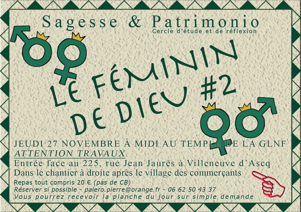 Ce rendez-vous, devenu régulier pour de nombreux Frères passionnés par l’histoire, la symbolique et la philosophie maçonnique, proposera cette fois une réflexion approfondie autour d’un thème intriguant et fertile : « Le Féminin de Dieu #2 ».