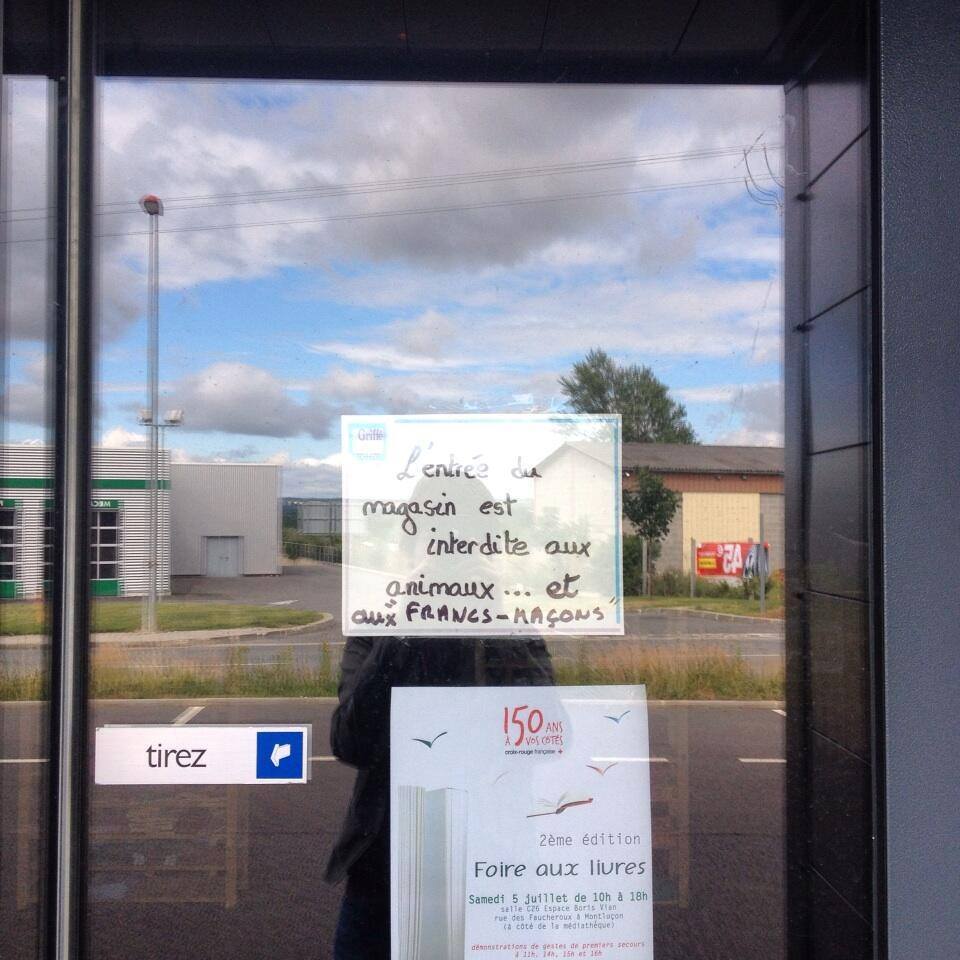 Montluçon – un commerçant a eu l’idée « débile » de mettre sur la porte de son magasin une affichette indiquant «L’entrée du magasin est interdite aux animauxæ et aux francs-maçons. »