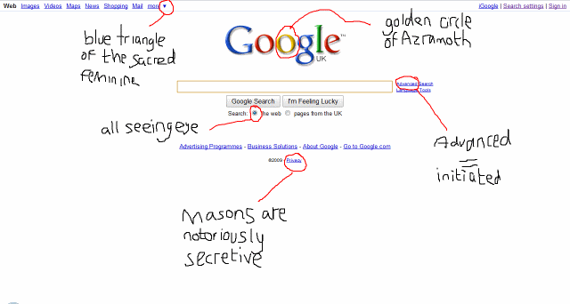 Dans la série « je vois les francs-macs partout » il y a cet article « Hidden Masonic Symbolism in the Google Home Page » qui date un peu (2009) mais qui resurgit au gré des commentaires.