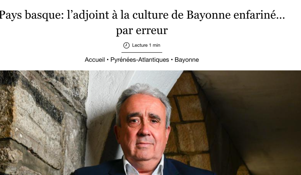 UN ARTICLE DU JOURNAL SUD OUEST : Pays basque: l’adjoint à la culture de Bayonne enfariné… par erreur