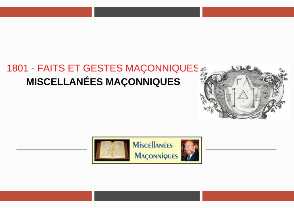 ✦ 15 avril. – Faisant suite au concordat de 1799… le Souverain Chapitre d’Arras « fait le sacrifice de ses privilègeso» et reconnaît la suprématie du Grand Orient de France.